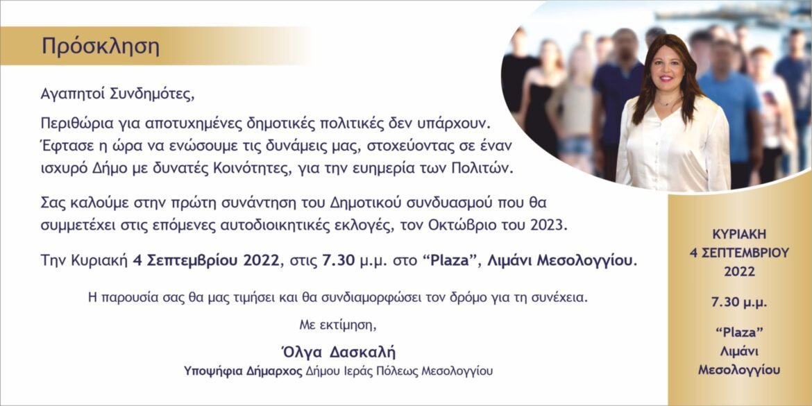 Η παρουσία σας θα μας τιμήσει και θα συνδιαμορφώσει τον δρόμο για τη συνέχεια.