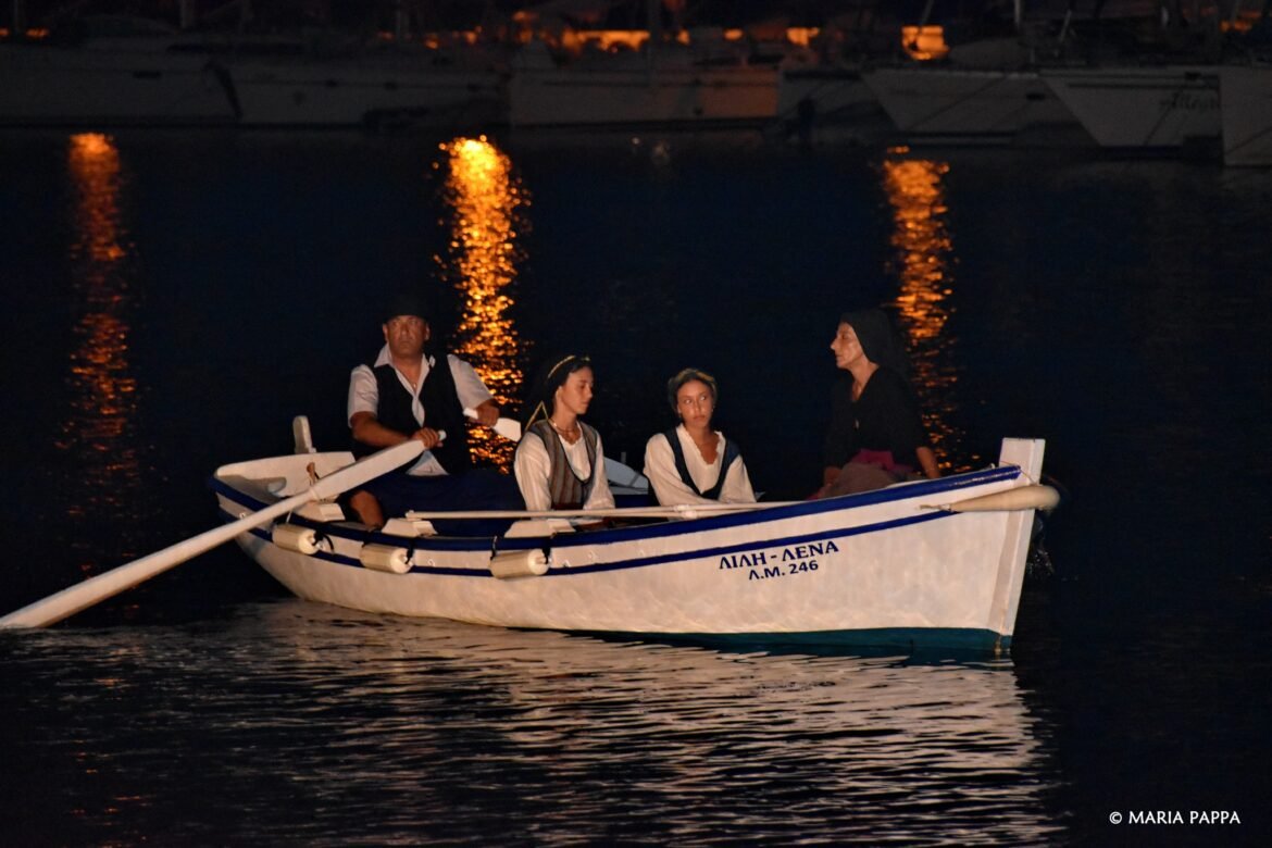 Οι εκδηλώσεις, τις οποίες συντόνιζε εκ μέρους των συνδιοργανωτών η Γεωργία Ιωαννίδου, συνεχίστηκαν το βράδυ στο μικρό γραφικό λιμάνι του Καλάμου. Το πρώτο μέρος των εκδηλώσεων περιλάμβανε λευκαδίτικους χορούς από τον μουσικοφιλολογικό όμιλο «Ορφέας» Λευκάδος και το δεύτερο ένα συγκινητικό δρώμενο μέσα στη θάλασσα που εξιστορούσε την άφιξη και υποδοχή των Μεσολογγιτισών στον Κάλαμο. Το δρώμενο ήταν βασισμένο σε ηχογραφημένο κείμενο της Δέσποινας Κανελλή, με φωνές της Ζωζώς Στέλλιου και του Ανδρέα Τσολίγκα, μουσική επένδυση του μαέστρου Σπύρο Χολέβα και υλοποιήθηκε από ομάδα του Ναυτικού Ομίλου που την αποτελούσαν η Ελένη Κοντονάσιου, οι θυγατέρες της Πολυτίμη και Μαρία και ο πλοίαρχος του εμπορικού ναυτικού Θανάσης Γιαννιώτης.