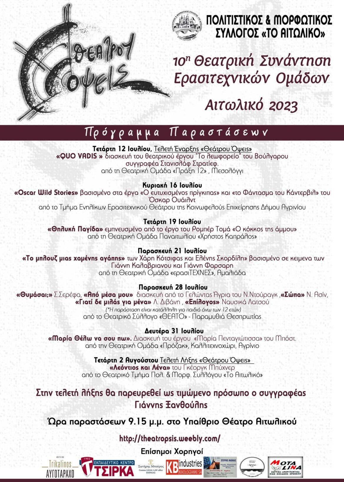Επόμενες παραστάσεις 3 και 19 Αυγούστου – Υπαίθριο Θέατρο Αιτωλικού, στις 9.15μμ.