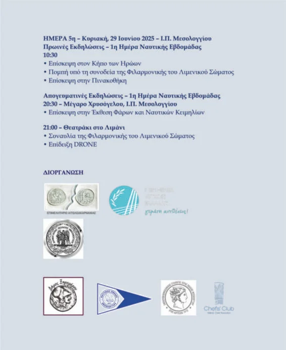 ΗΜΕΡΑ 5η – Κυριακή, 29 Ιουνίου 2025 – Ι.Π. Μεσολογγίου