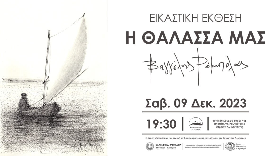 Το Σάββατο 9 Δεκεμβρίου στις 19:30, ο οργανισμός MESSOLONGHI BY LOCALS παρουσιάζει την εικαστική έκθεση “Η ΘΑΛΑΣΣΑ ΜΑΣ”, του Βαγγέλη Ρόμπολα. Η έκθεση είναι βασισμένη στο ημερολόγιο του οργανισμού «ΤΟ ΜΕΣΟΛΟΓΓΙ ΤΩΝ ΝΤΟΠΙΩΝ-MESSOLONGHI BY LOCALS» για το έτος 2024, το οποίο αποτελείται από 13 πρωτότυπα έργα του Βαγγέλη Ρόμπολα.