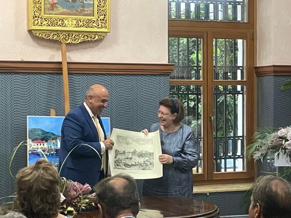 Νωρίτερα, είχε προηγηθεί η αναγόρευση της Δρ Ολυμπίας Βικάτου, Γενικής Διευθύντριας Αρχαιοτήτων και Πολιτιστικής Κληρονομιάς και πρώην Προϊσταμένης της ΕΦΑ Αιτωλοακαρνανίας, σε επίτιμη δημότη Ναυπάκτου στο Δημαρχείο της πόλης, μετά από ομόφωνη γνωμοδότηση και απόφαση του Δημοτικού Συμβουλίου. Την αναγόρευση χαιρέτισαν η Υπουργός Πολιτισμού, ο Μητροπολίτης και ο Δήμαρχος Ναυπακτίας, ενώ τον τιμητικό λόγο εκφώνησε ο Καθηγητής Προϊστορικής Αρχαιολογίας κ. Ανδρέας Βλαχόπουλος.
