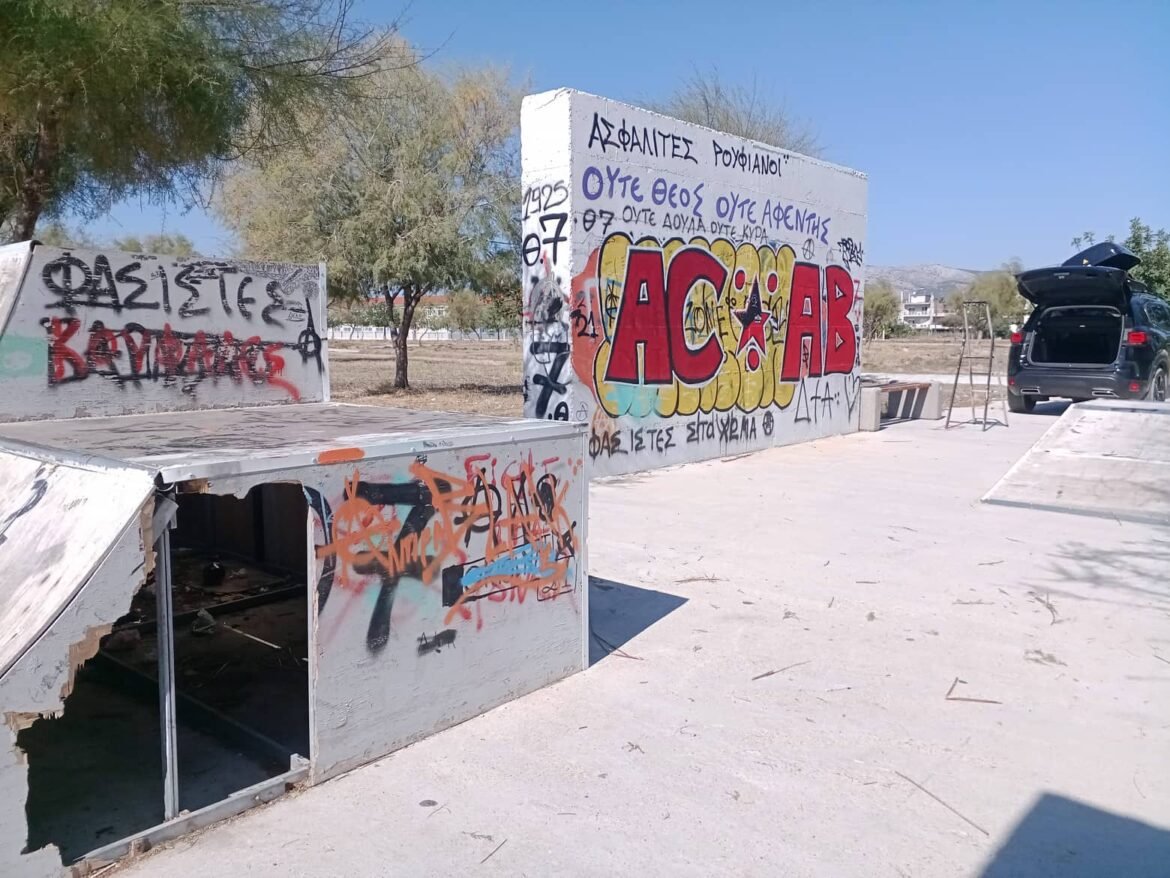Άλλο ένα δημοτικό έργο που έγινε χωρίς σχεδιασμό, όραμα , διαβούλευση κτλ. Ο συγκεκριμένος χώρος θα μπορούσε να είναι ένα μοναδικό πάρκο εξωτερικών εναλλακτικών δράσεων. Αλλά εσείς ρε «επαναστάτες της πλάκας» γιατί καταστρέφετε μια δημόσια περιουσία που θα μπορούσε εν μέρει να αξιοποιηθεί, κάνοντας τον επικίνδυνο και αφιλόξενο  για τα παιδιά. Η επανάσταση δεν γίνεται με καταστροφές δημόσιας περιουσίας, σκουπίδια και μουτζούρες!!  Συγχαρητήρια στην ομάδα graffiti του @Papageorgiou Georgios που εθελοντικά προσπαθεί να καλύψει την ασχήμια και κακογουστιά μας.